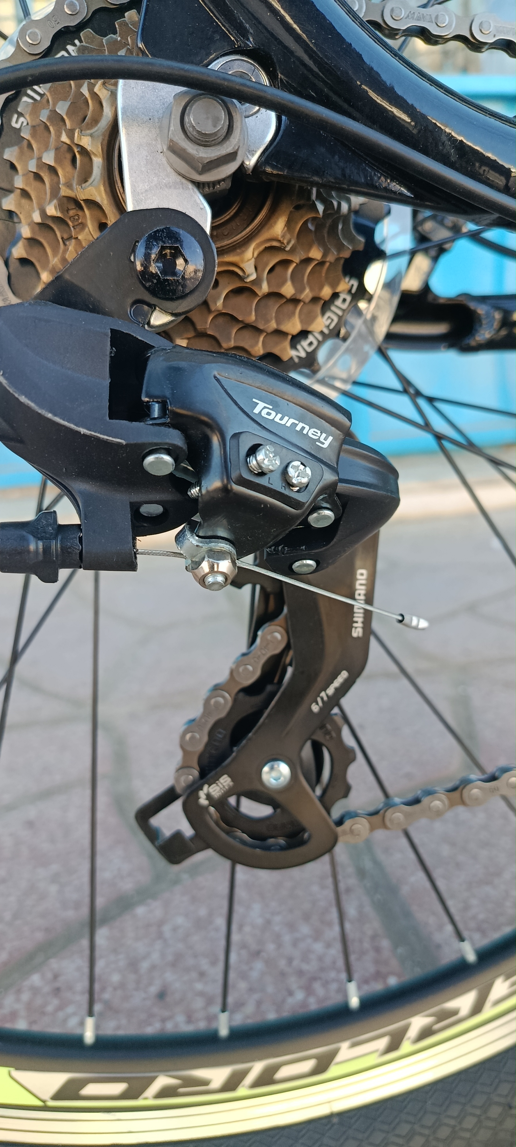 بدنه آلومینیوم یک تیکه بدون جوش میل تنه بلبرینگ چرخ عقب و جلو بلبرینگ توپی طلایی 21سرعته ست دنده تورنی دسته دنده خفاشی ساخت تایوان